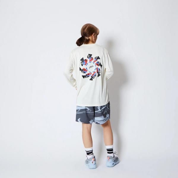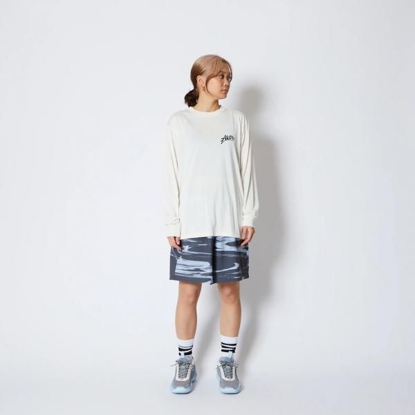design:規則正しく並んだNICKが、予期せぬねじれの力を受けて歪んでいるグラフィックが特徴の長袖TEEシャツ。